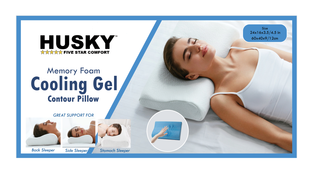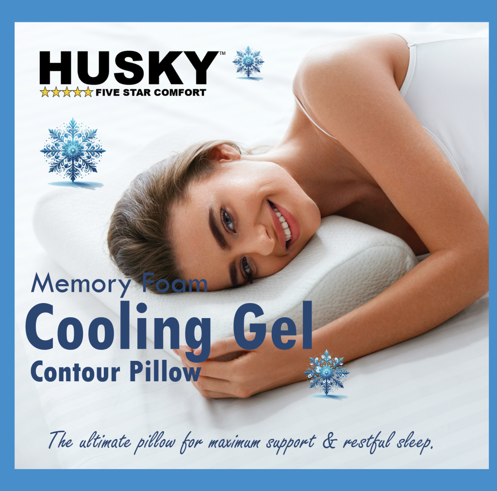 Elevate your sleep experience with the Husky Premium Memory Foam Cooling Gel Contour Ergonomic Orthopedic Pillow. Experience the perfect blend of comfort, support, and cooling technology, and wake up rejuvenated every morning.