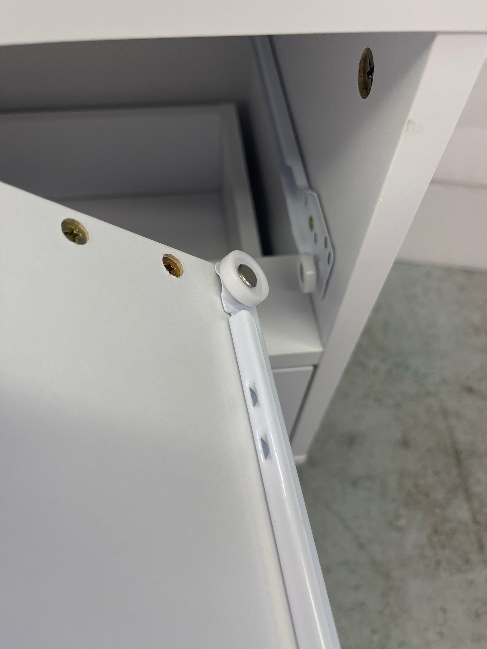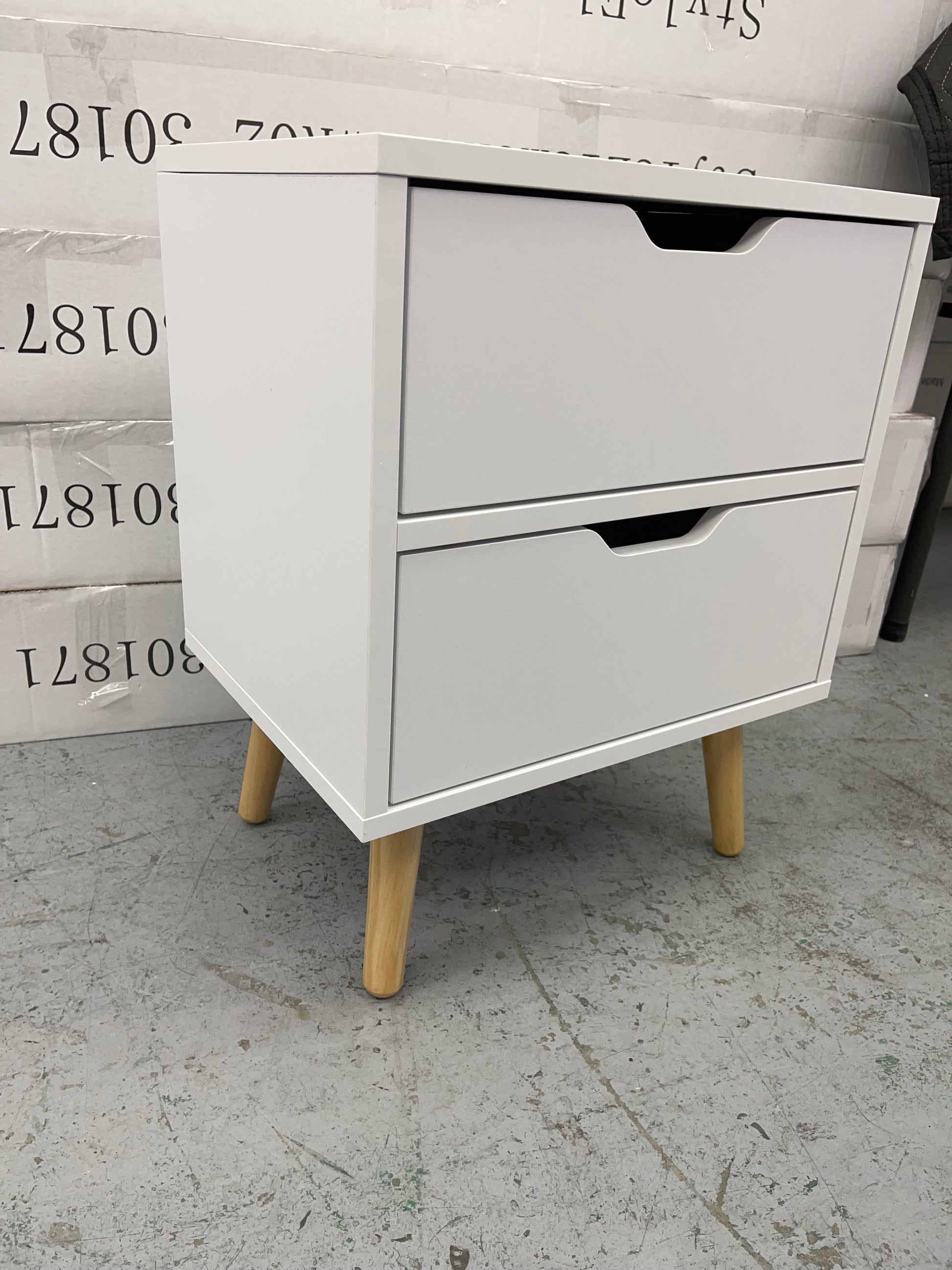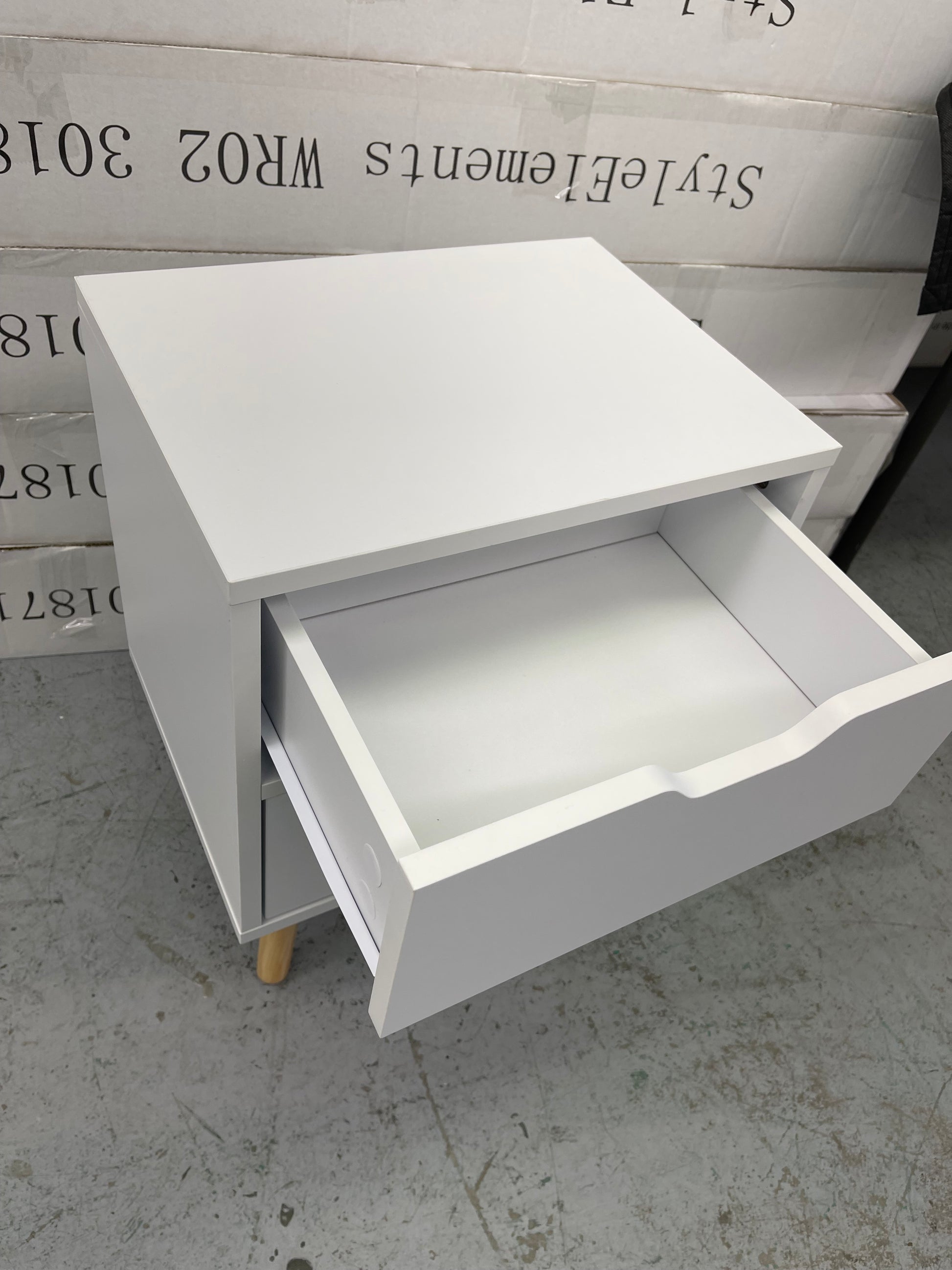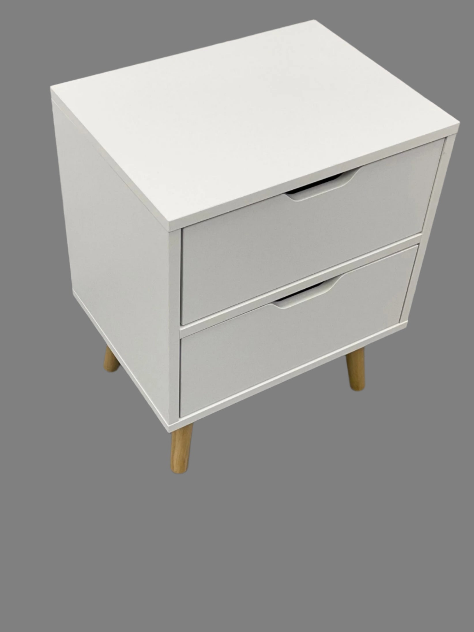 Nightstand with Legs, white, 16” wide, 12” deep, 20” high, white laminate.
